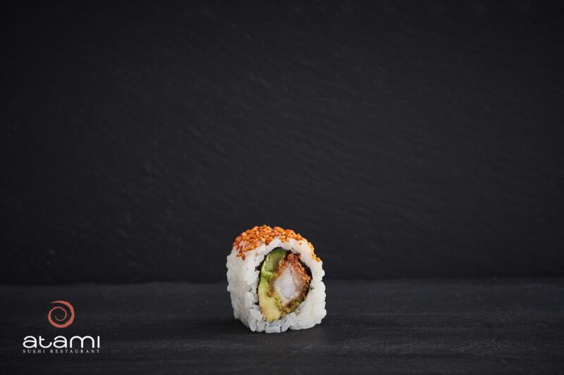 Tempura reje, avocado, agurk, spicy mayo, chili sesam (8 stk.)